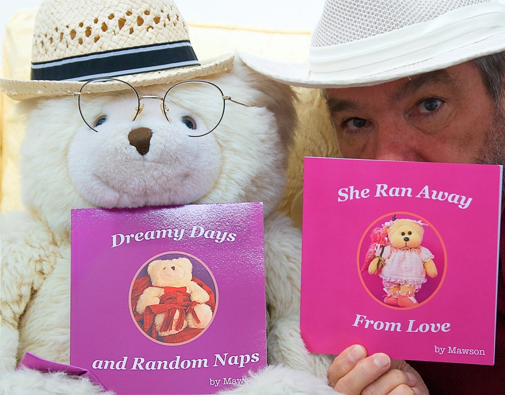 I’m Mark, Guardian of Mawson the Writer-Bear (See more on Page called Guardian). Mawson and I loll about on cushions in Perth, Western Australia. We have made 3 books (I had to help a lot) and also done the illustrations for another book called When A Brave Bears Fights Cancer by Carola Schmidt