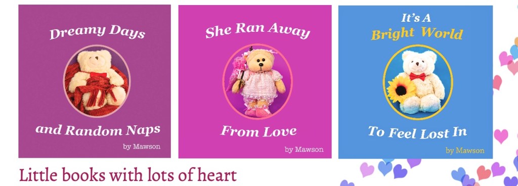 You are at Baffled Bear Books, the blog of Mark, guardian and blundering typist for Mawson Bear, Ponderer of Baffling Things and one of this bright world’s few published bears. Mawson is writer bear of It’s A Bright World To Feel Lost In.