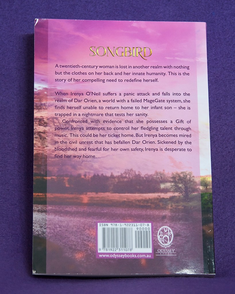 Songbird is the first in a trilogy called GriffinSong. Aeryl has gone out at night to pick up medicines at a late night chemist (drugstore). That’s all. Nothing unusual there. And she has arrived another world via a collision with brick wall. She desperately needs to rejoin her child but the mirror from which she emerged does not seem to work in reverse. But right now her immediate problem is to avoid being burned alive by the people in this strange place.