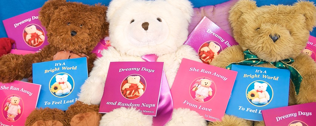 Mawson’s Guardian Says: Fortunately, we happen to know about books that are entirely suitable for your bears. They are suitable too for everyone you know who loves them. Oh yes, our Mawson the Writer-bear’s little books are just the thing to get your paws on
